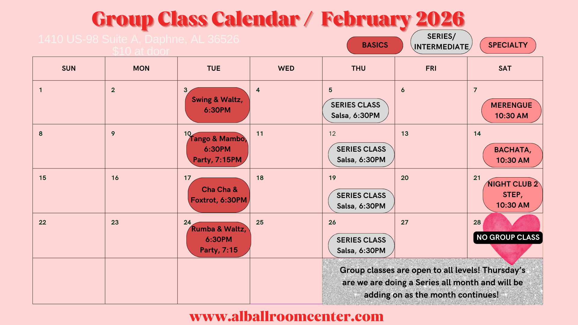 $10 for entry or free if you are signed up for lessons or attended group class!